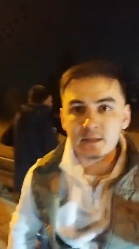 Шахсе, ки наворбардорӣ мекунад, ба самти чанд тани дигар ишора карда, онҳоро “террористон” меномад ва мегӯяд, ки “Худо хоҳад ҳамаашон Тоҷикистон мераванд. Ва як тани дар навор будаҳо мегӯяд мо террорист нестем. Дар ҳамин ҳолат нафаре бо чӯбдасте ба наворбардор ҳамла мекунаду тирезаҳои мошини тамғаи “Лексус”-ро зада мешиканад. Ҳамлавар ҳамчун ба сӯйи наворбардор мегӯяд, ки боз моро “угрожать мекунӣ”. Ин наворбардор ба тарафи нафари дар заминхобида мераваду мегӯяд Умарро кӣ задааст.